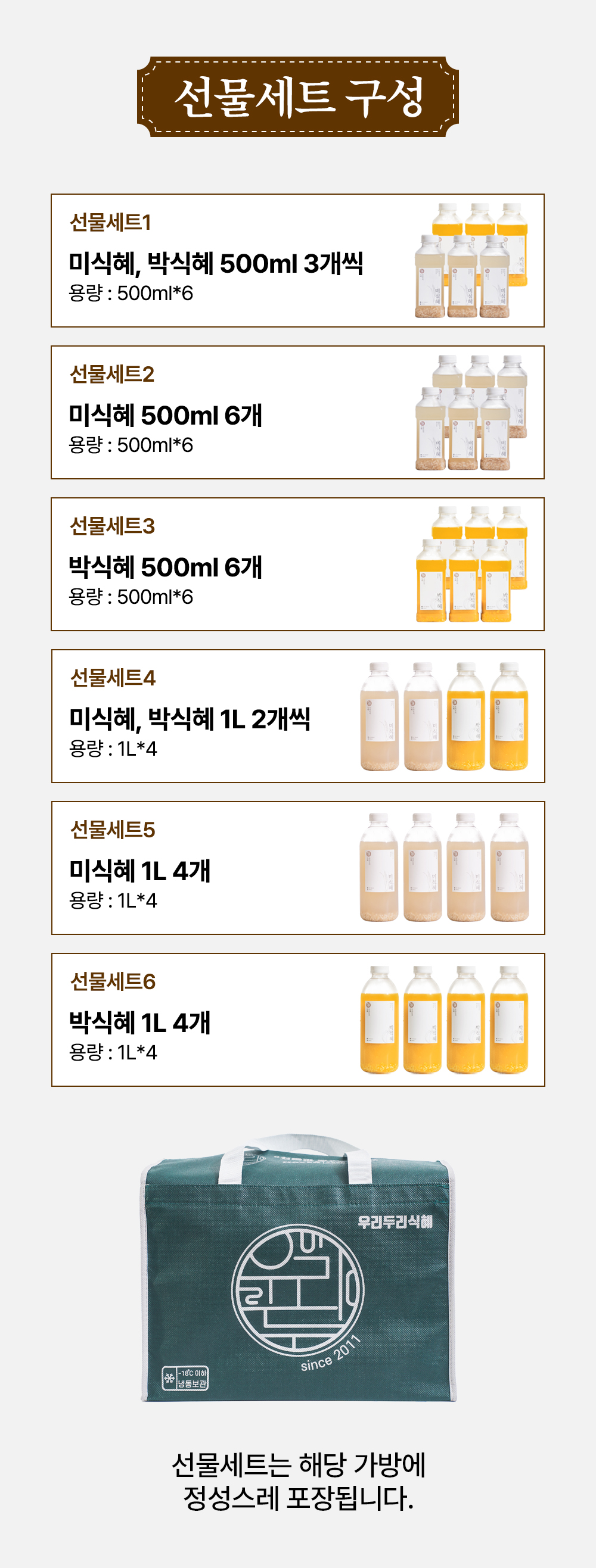 우리두리식혜 1L 4개 선물세트 또는 우리두리식혜 500ml 6개 선물세트
