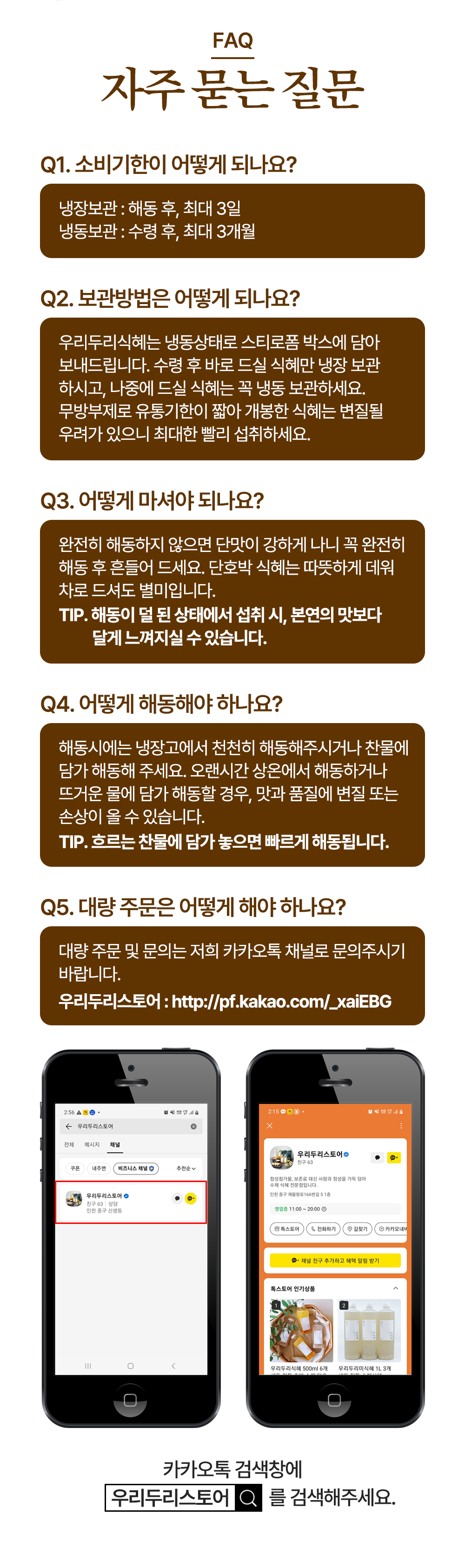 품질유지기한 : 냉장보관시 3~4일, 냉동보관시 3개월 권장합니다.